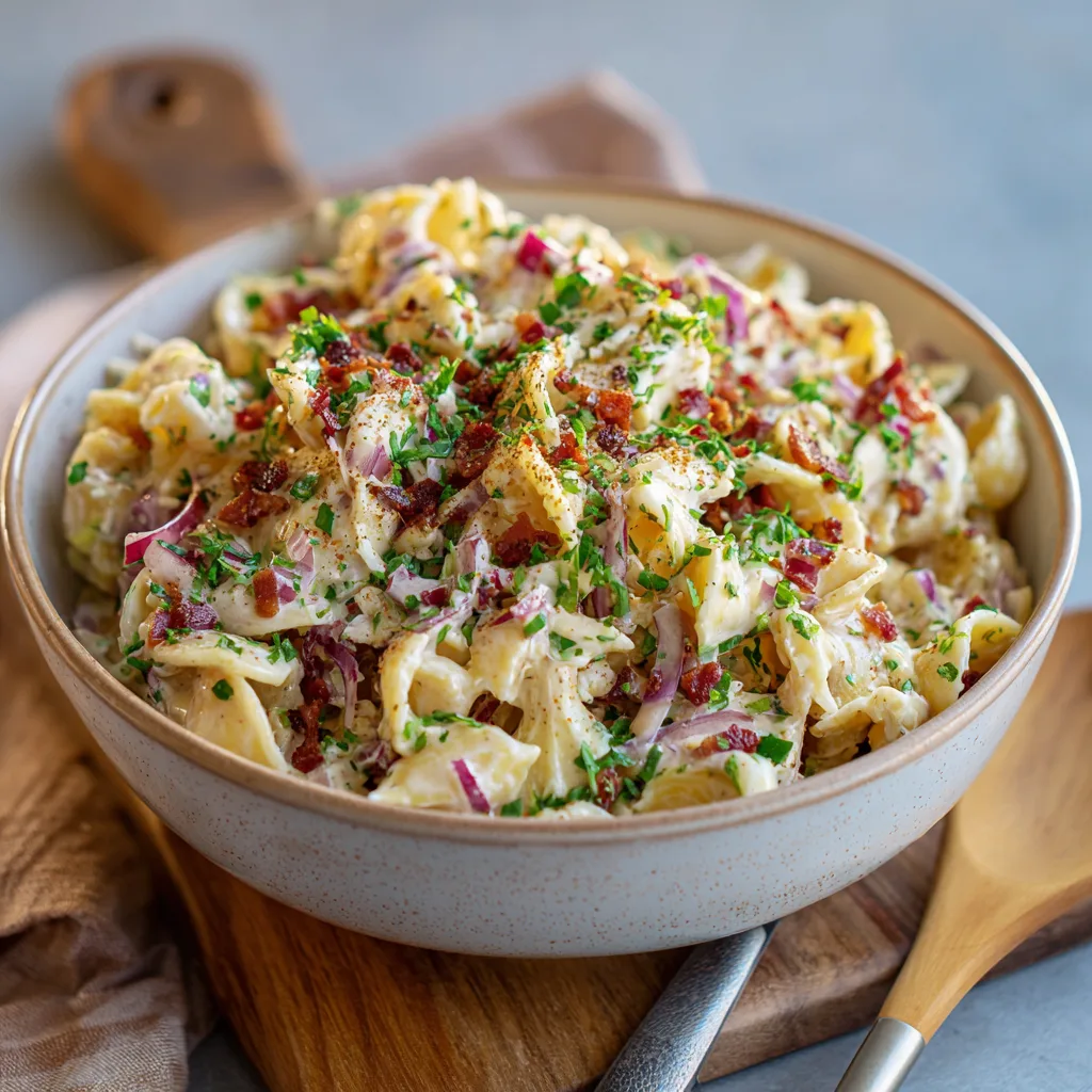 A creamy, bacon-loaded pasta salad with cheddar cheese and ranch flavor that’s irresistibly addictive and perfect for gatherings.