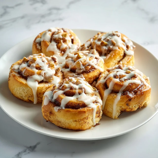 Soft and fluffy cinnamon rolls filled with sweet apple pieces, topped with cream cheese glaze, perfect for fall breakfasts.