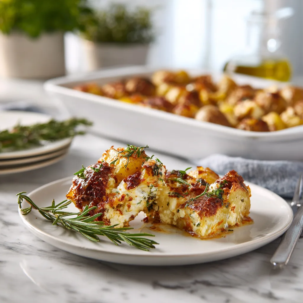 Elevate your weeknight dinners or weekend feasts with Baked Feta Potatoes, a Mediterranean-inspired one-pan dish that is crisp, golden, and bursting with savory flavor. Perfectly tender potatoes are roasted with feta, garlic, olive oil, and aromatic herbs for a simple yet impressive dish.