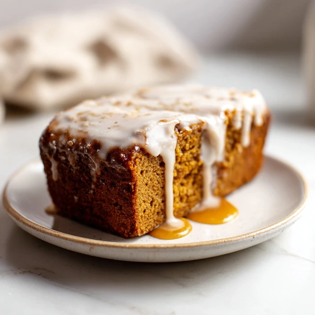 The crumb is soft, tender, and moist without being heavy. The pumpkin flavor is present but refined, supported by warm spices rather than overwhelmed by them. The glaze adds richness and contrast, soaking slightly into the top while forming a glossy finish.