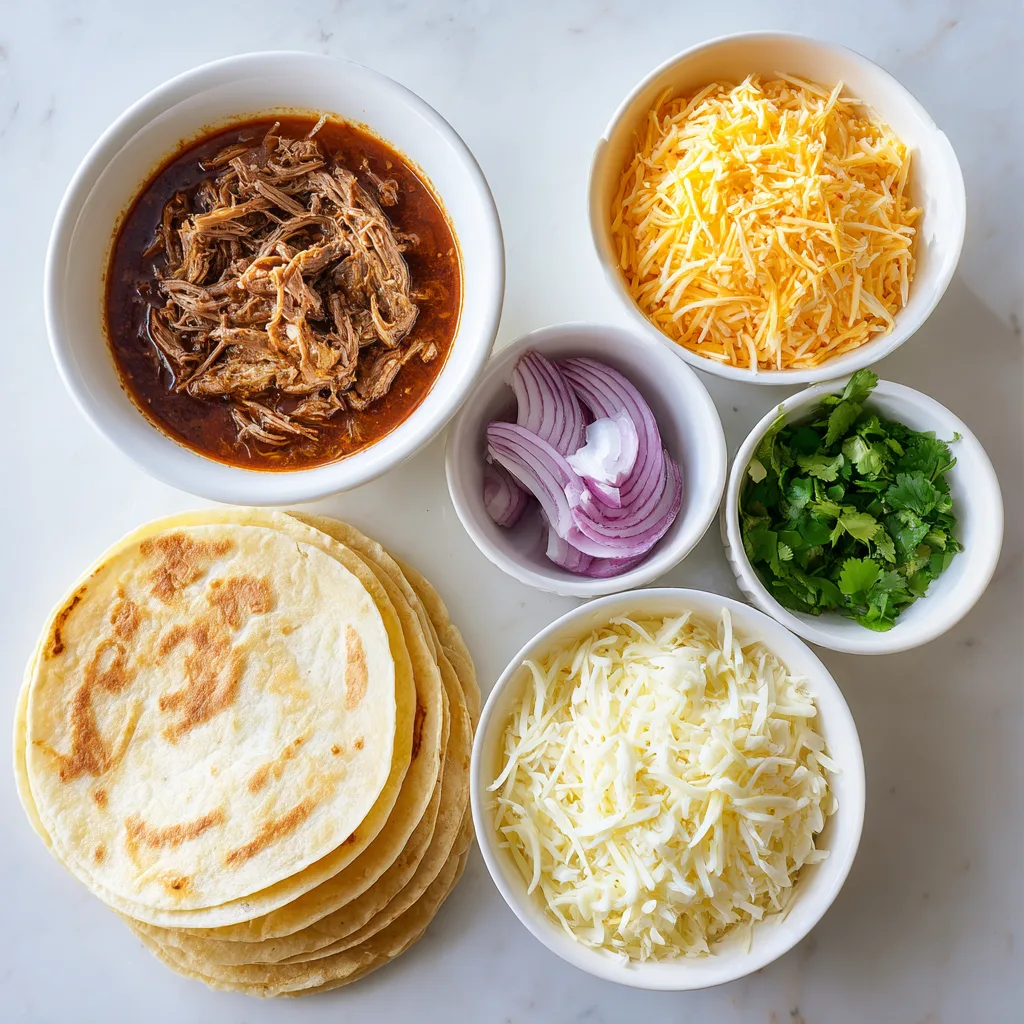 - Fill tortillas with birria beef and cheese, then roll.