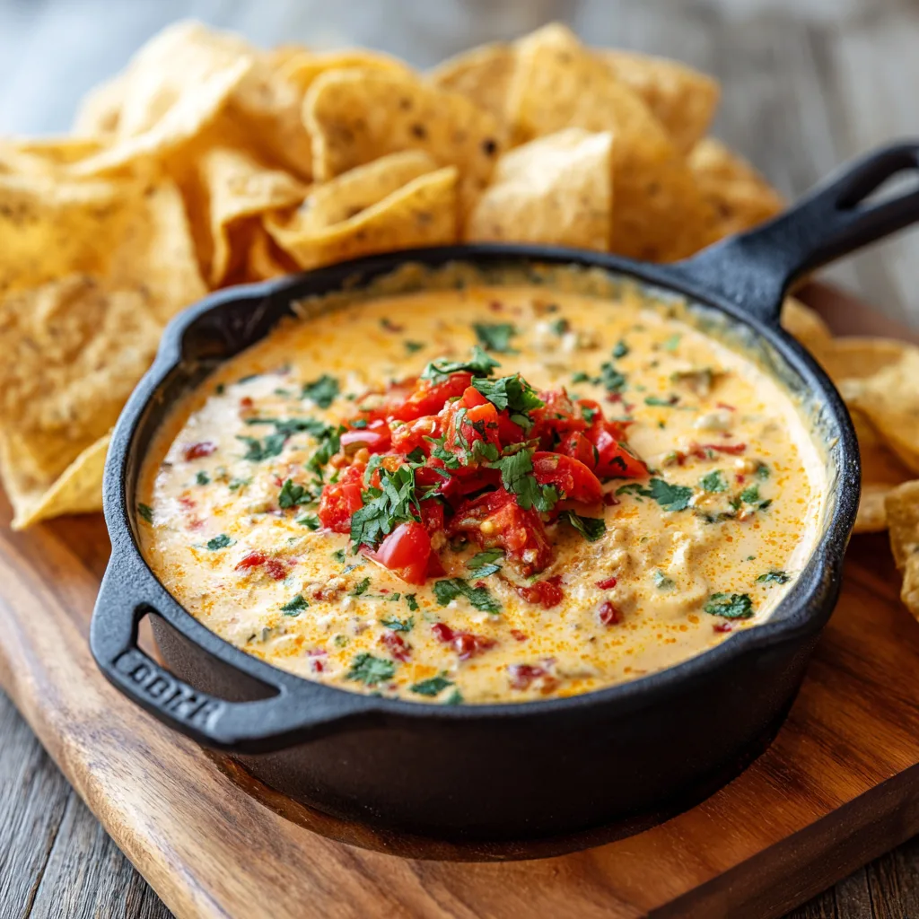 Ultra-creamy queso dip made with melted cheese, Rotel tomatoes, and ranch seasoning — perfect for parties and game day.