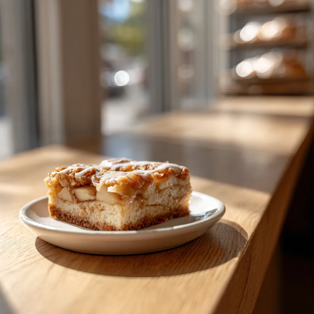 They are designed to be cut into squares, stacked on trays, and enjoyed with coffee. This recipe recreates that exact bakery experience at home — thick, sturdy slices that hold their shape and deliver comforting apple flavor in every bite.