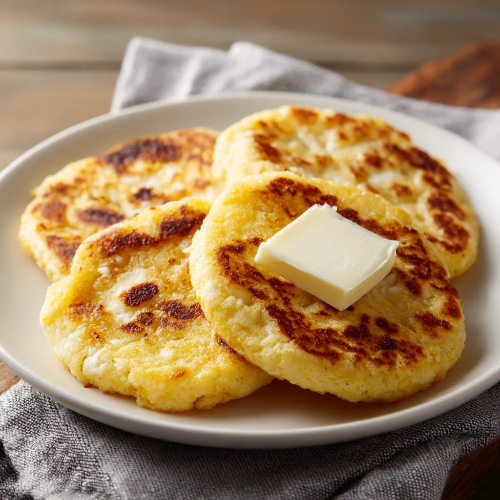 Arepas are traditional corn cakes made from pre-cooked cornmeal (masa harina or masarepa) that are mixed with water or milk, shaped into patties, and cooked on a griddle.