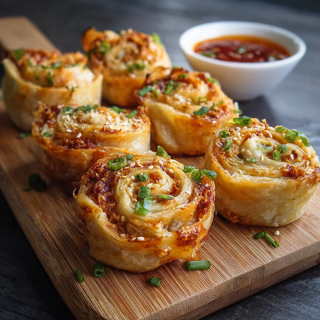 Creamy crab rangoon filling rolled into crispy baked pinwheels, perfect for parties.