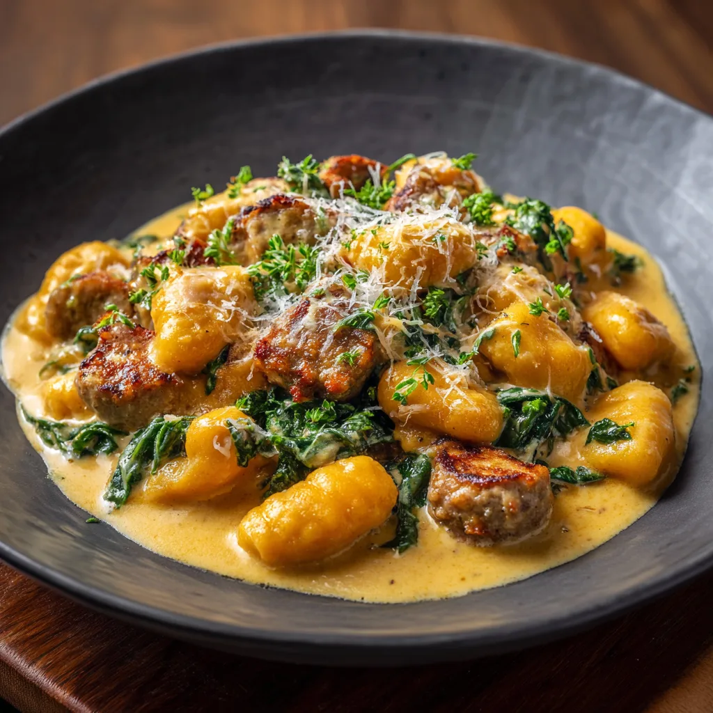 - Texture: soft gnocchi, silky sauce, juicy sausage