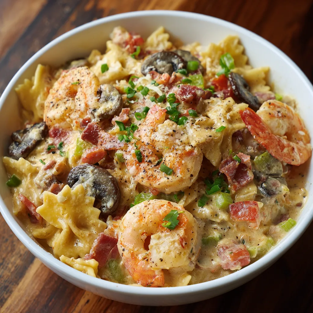 Imagine tender shrimp, smoky sausage, sweet bell peppers, and perfectly cooked pasta coated in a rich, creamy Cajun sauce. Each forkful balances spice, creaminess, and deep savory flavor. The texture is luxurious yet comforting. The aroma? Pure Southern magic.