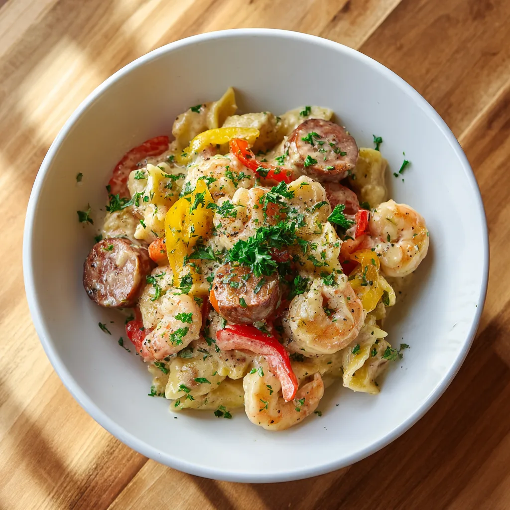 A Bold, Festive Cajun-Inspired Pasta Loaded with Shrimp, Sausage & Creamy Spice