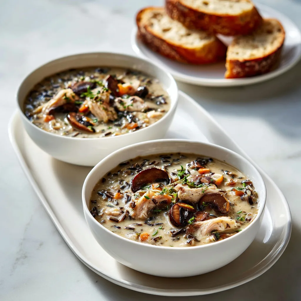 What sets this soup apart is its layers of texture and flavor. Nutty wild rice provides a satisfying chew, roasted mushrooms add deep umami richness, and tender chicken brings protein and substance. Everything is wrapped in a creamy, herb-infused broth that feels luxurious while remaining balanced and soothing.