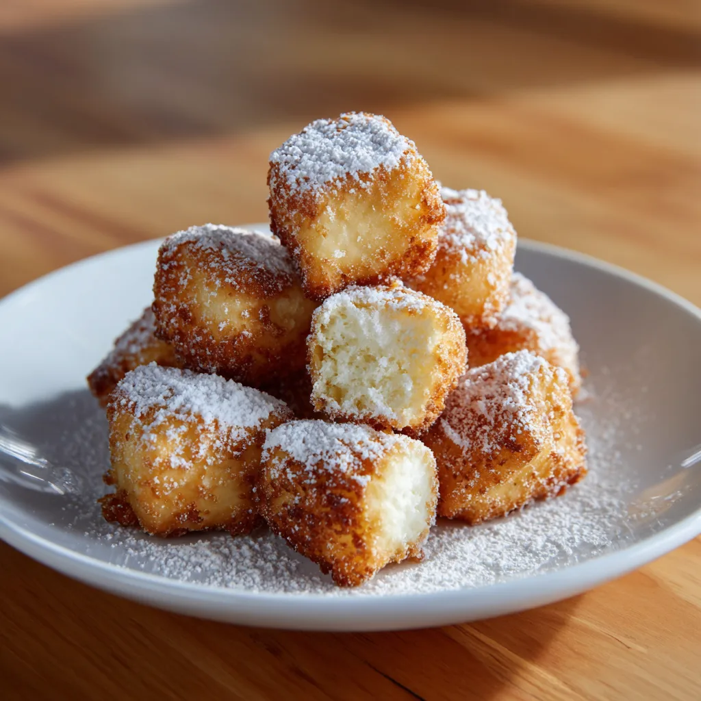 The outside is light and crisp — almost funnel-cake-like — while the inside becomes soft, stretchy, and warm. The sweetness is gentle, not overpowering, making these dangerously easy to eat.