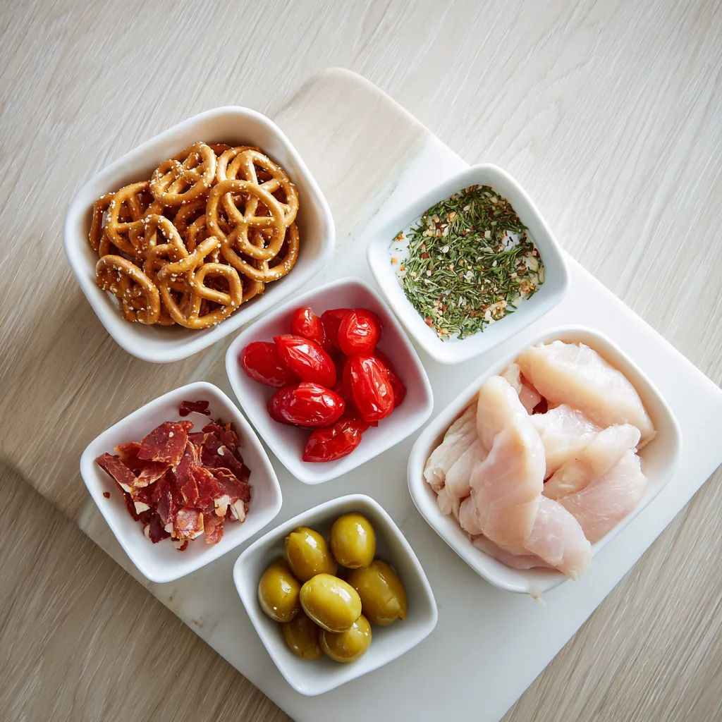 - Set up three bowls: flour, beaten eggs, and pretzel crumbs mixed with spices.