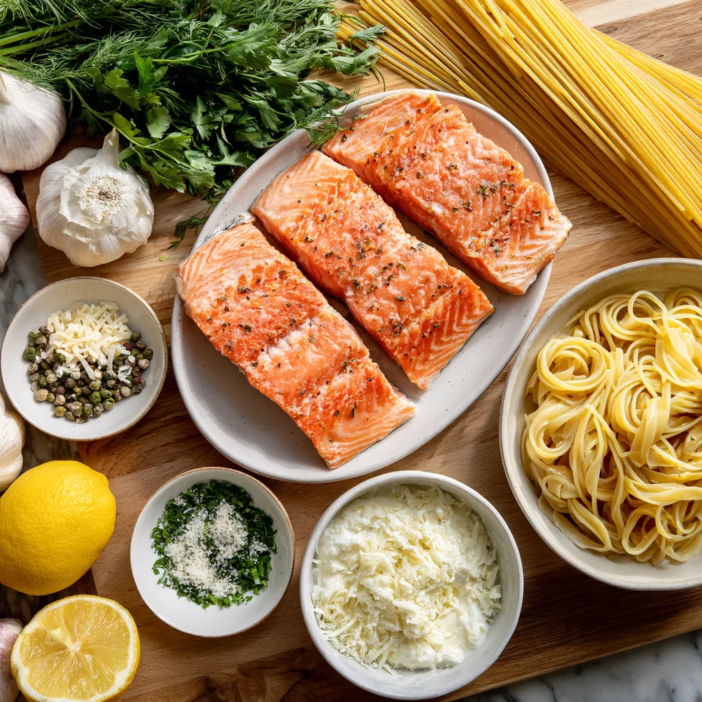 - Lemon Butter Salmon Linguine