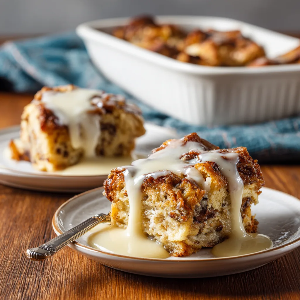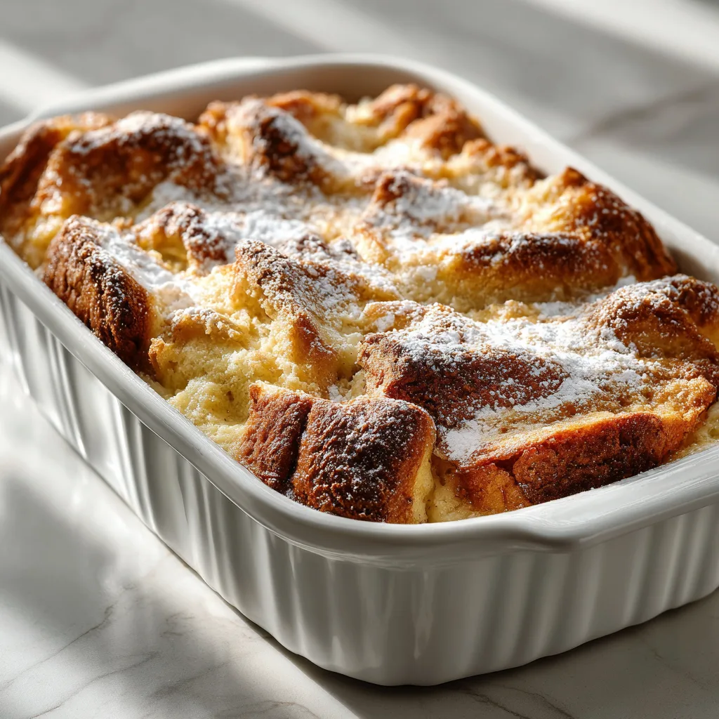 A festive holiday bread pudding made with rich eggnog, warm spices, and baked until golden and custardy.