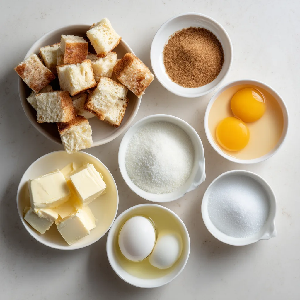 • 5 cups day-old bread, cubed (brioche or challah preferred)