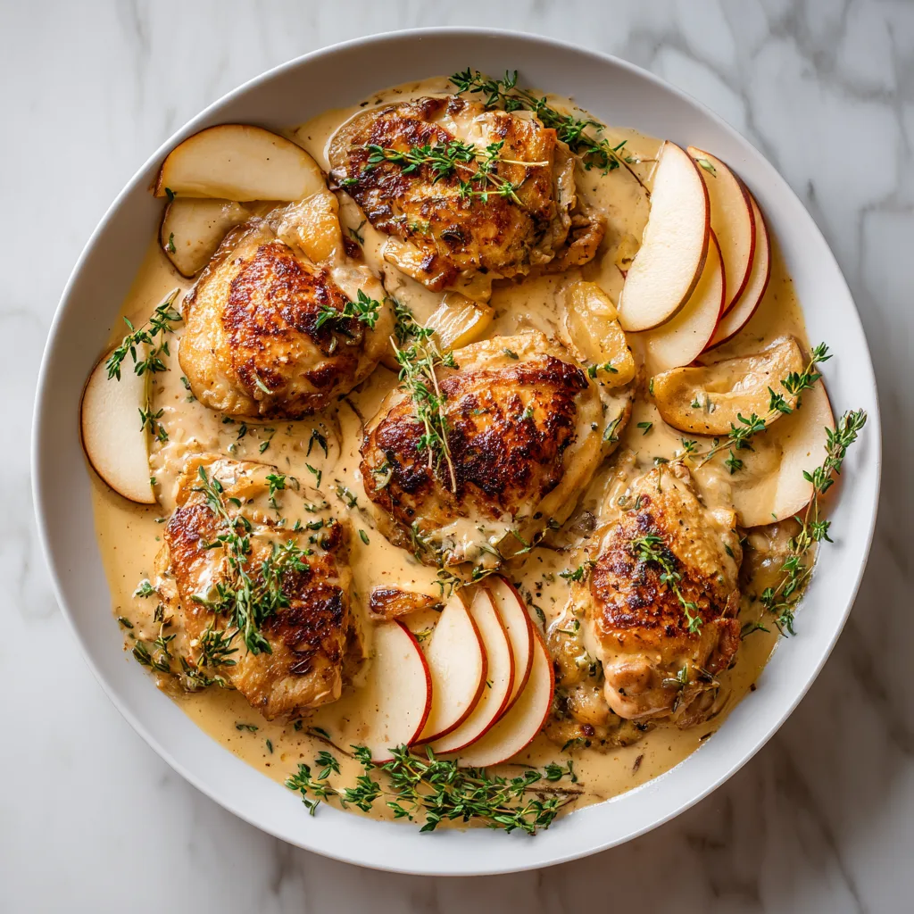 Tender chicken simmered in a creamy apple cider sauce inspired by Normandy cuisine.