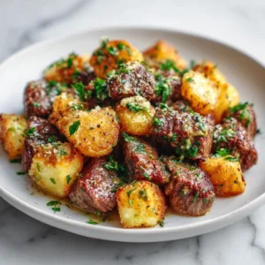 Garlic Butter Steak Bites with Crispy Potatoes is a hearty and satisfying dish that combines tender, juicy steak pieces with perfectly golden potatoes, all coated in a rich garlic butter sauce. This recipe has gained popularity for its bold flavors, quick cooking time, and one-pan convenience.