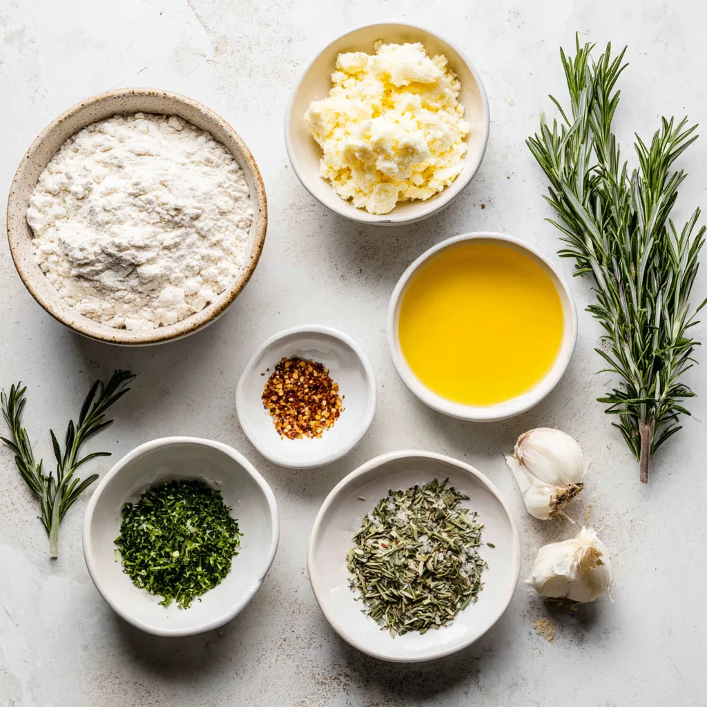 - Add garlic, herbs, water, and oil. Mix to form dough.