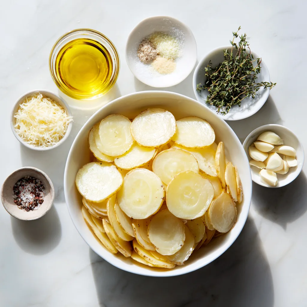Each ingredient plays a role in building flavor. Russet potatoes crisp beautifully, while Yukon Golds provide a creamier interior. Garlic brings warmth, butter adds richness, and herbs provide aromatic freshness that cuts through the richness.