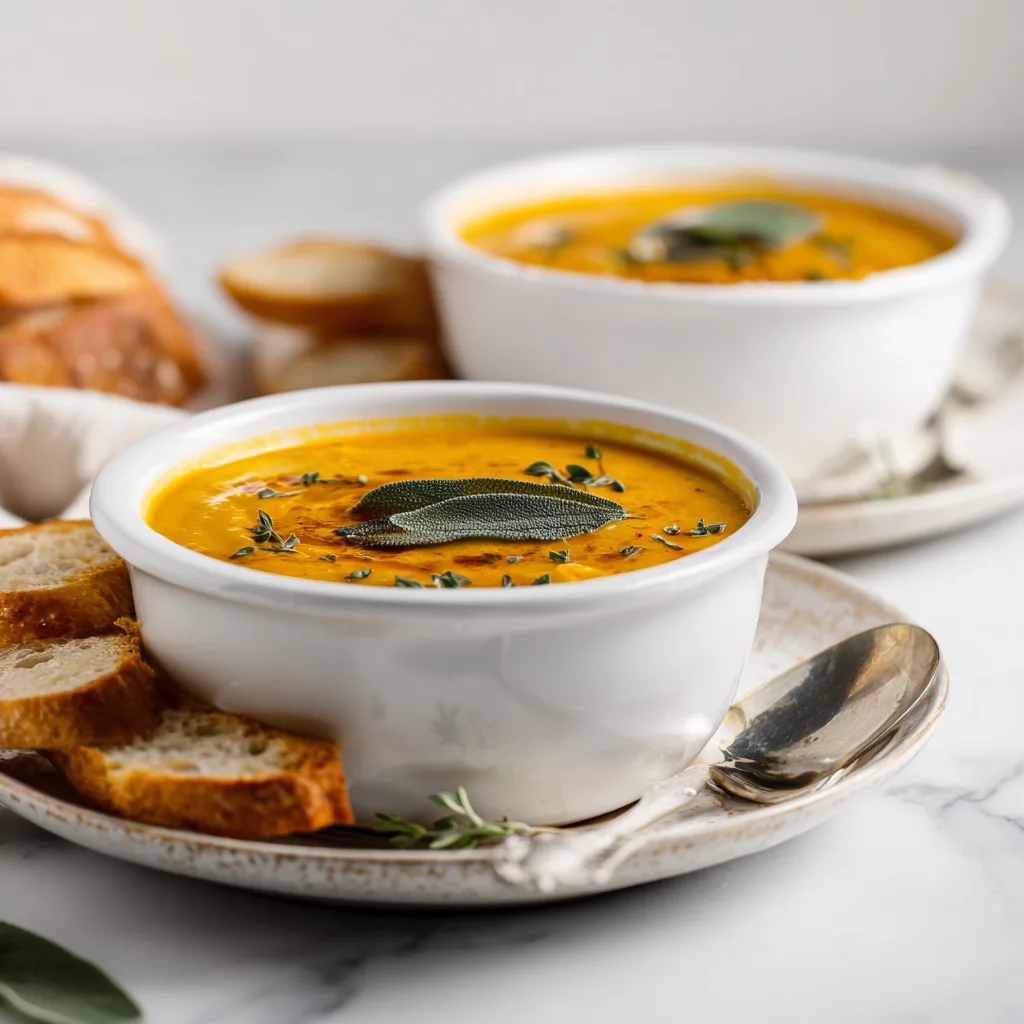 Pumpkin soups have roots in European harvest cooking, particularly in France and Italy, where squash bisques are considered refined yet comforting dishes. Sage has been used for centuries as a warming herb believed to aid digestion and enhance rich foods. Together, they form a timeless seasonal pairing that continues to appear in modern kitchens.
