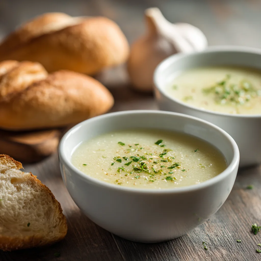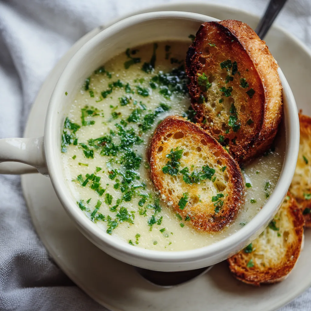 Slow-simmered garlic loses its harshness and becomes soft, aromatic, and slightly sweet. Combined with herbs, broth, and a silky egg-and-cheese liaison, this soup delivers depth without heaviness. It’s rustic, elegant, and deeply satisfying.