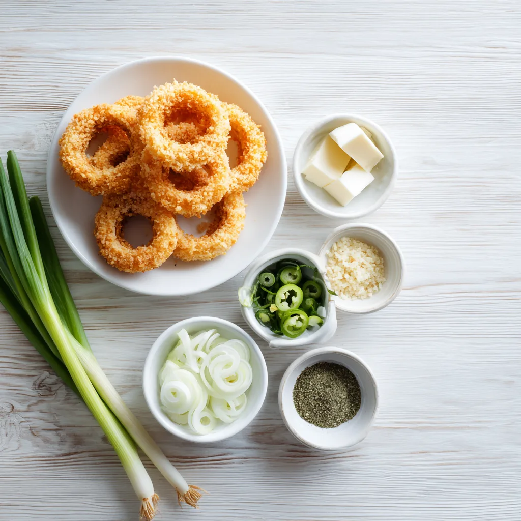 This recipe takes the classic onion ring and elevates it into something extraordinary. Inspired by the bold flavors of jalapeño poppers, these stuffed rings are crunchy on the outside and creamy on the inside. Whether you’re hosting a party, planning game day snacks, or just craving something indulgent, this dish delivers big flavor with every bite.