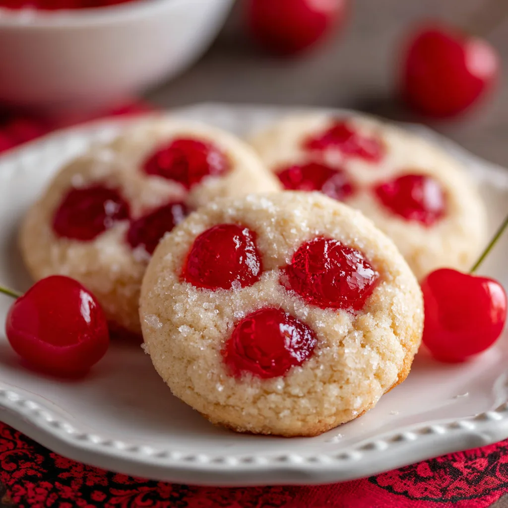 This recipe was created with joy in mind. It’s playful but elegant, simple yet memorable. The maraschino cherries bring a classic flavor that feels retro and comforting, while the sugar cookie base keeps things familiar and universally loved. These cookies are perfect for holidays, birthdays, baby showers, Valentine’s Day, and especially parties where desserts need to be eye-catching and irresistible.