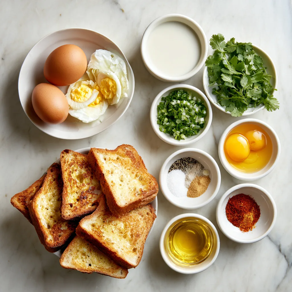 Masala French toast delivers a bold savory punch. The eggs provide richness, while onions add sweetness and texture. Green chilies introduce heat, balanced by milk and bread softness. Turmeric brings warmth and color, while cilantro adds freshness.
