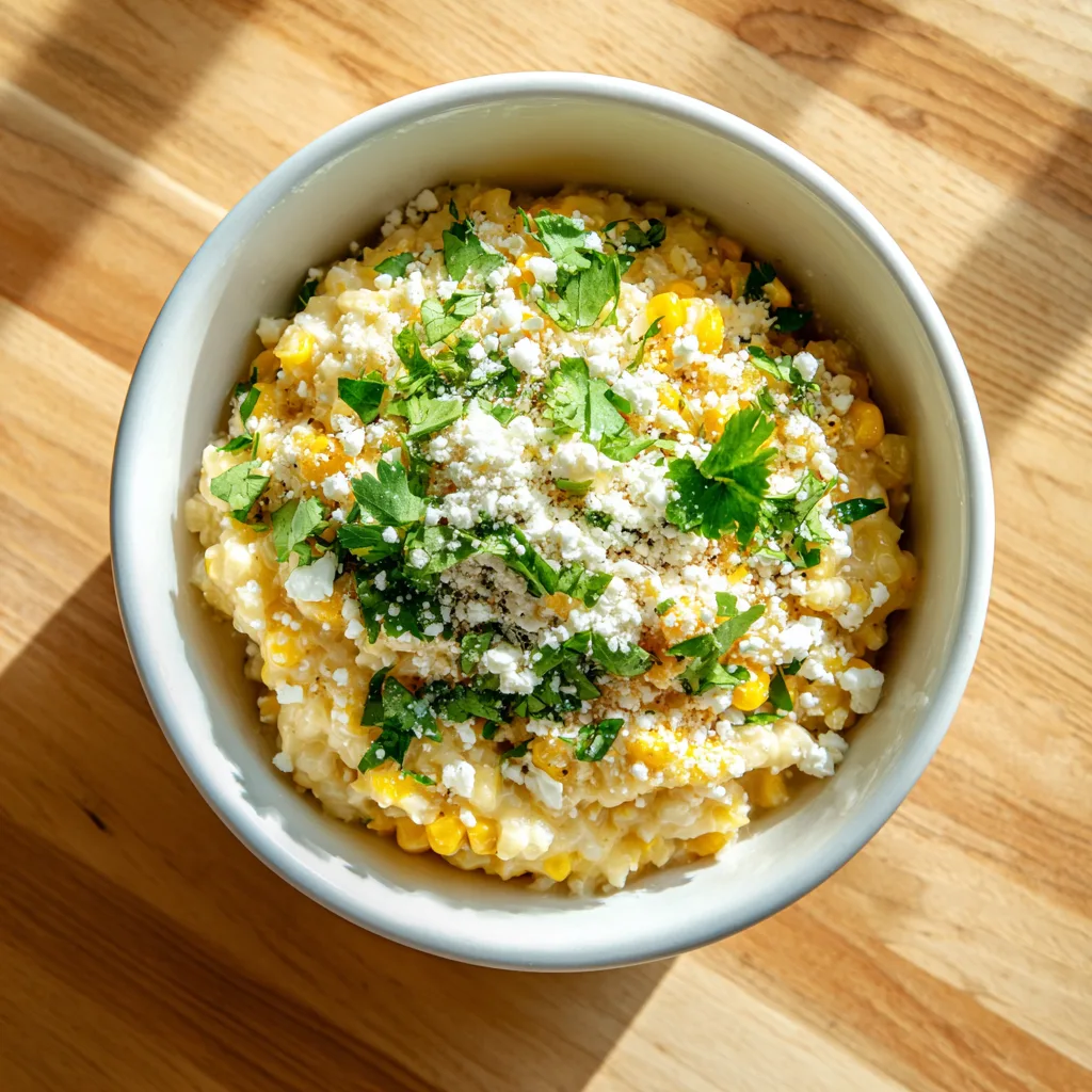 This risotto holds beautifully, scales easily, and feels luxurious without demanding expensive ingredients. The corn adds texture, while the cheeses deliver richness — making it a crowd-pleasing centerpiece.