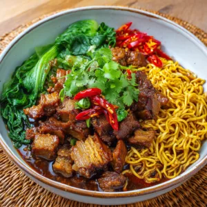 The rich broth, tender chicken, hearty vegetables, and soft dumplings create a dish that is both satisfying and deeply flavorful.