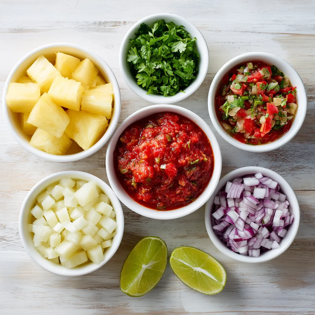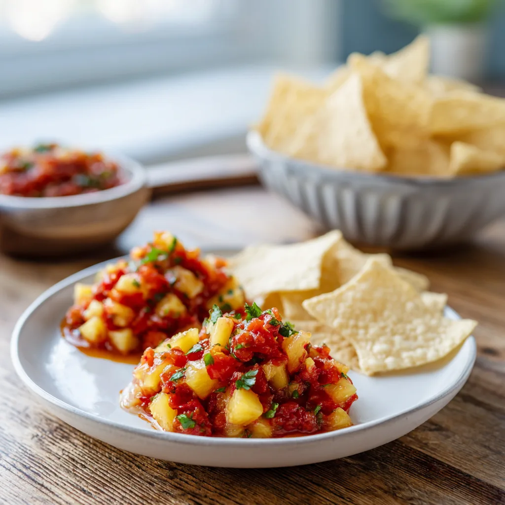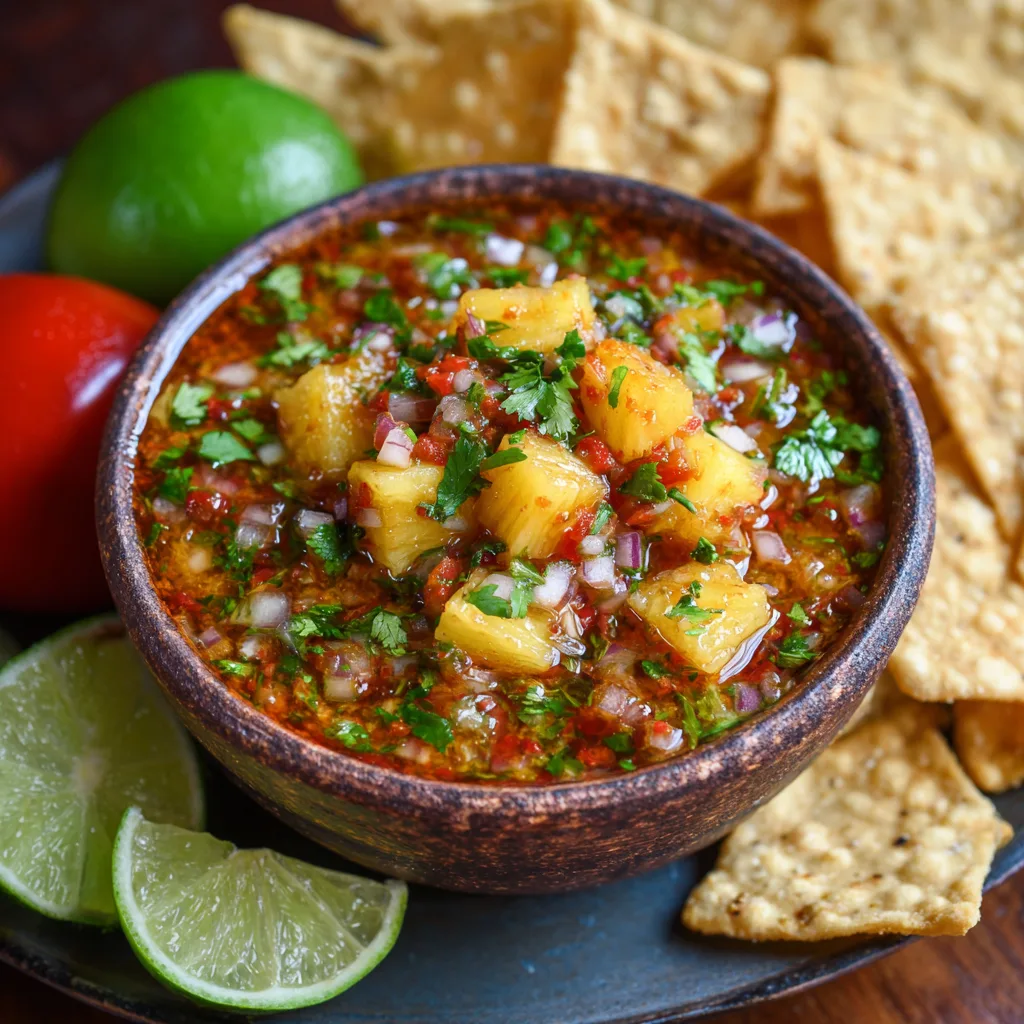 A vibrant sweet and smoky salsa made with fresh pineapple, chipotle peppers, and lime—perfect for dipping or topping grilled dishes.