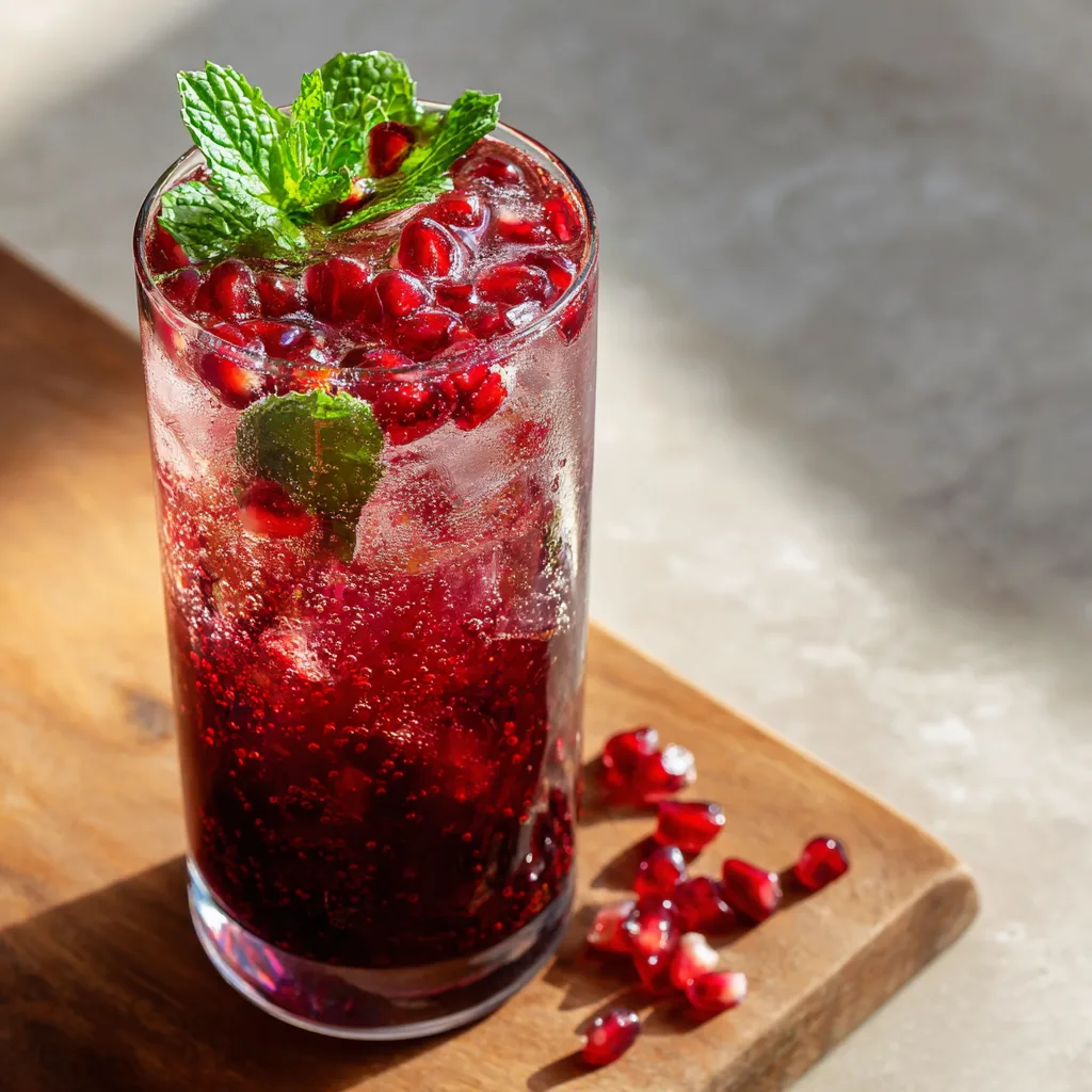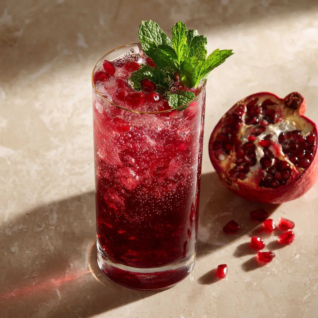 Pomegranate juice brings natural tartness and rich color, while sparkling water or soda adds a lively effervescence. A touch of citrus brightens the drink, and fresh garnishes make it feel cocktail-worthy without any alcohol.