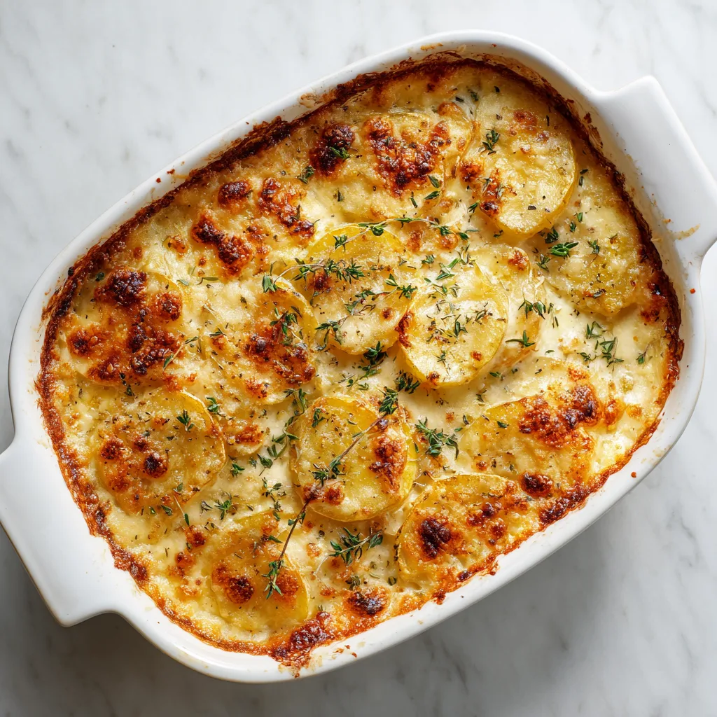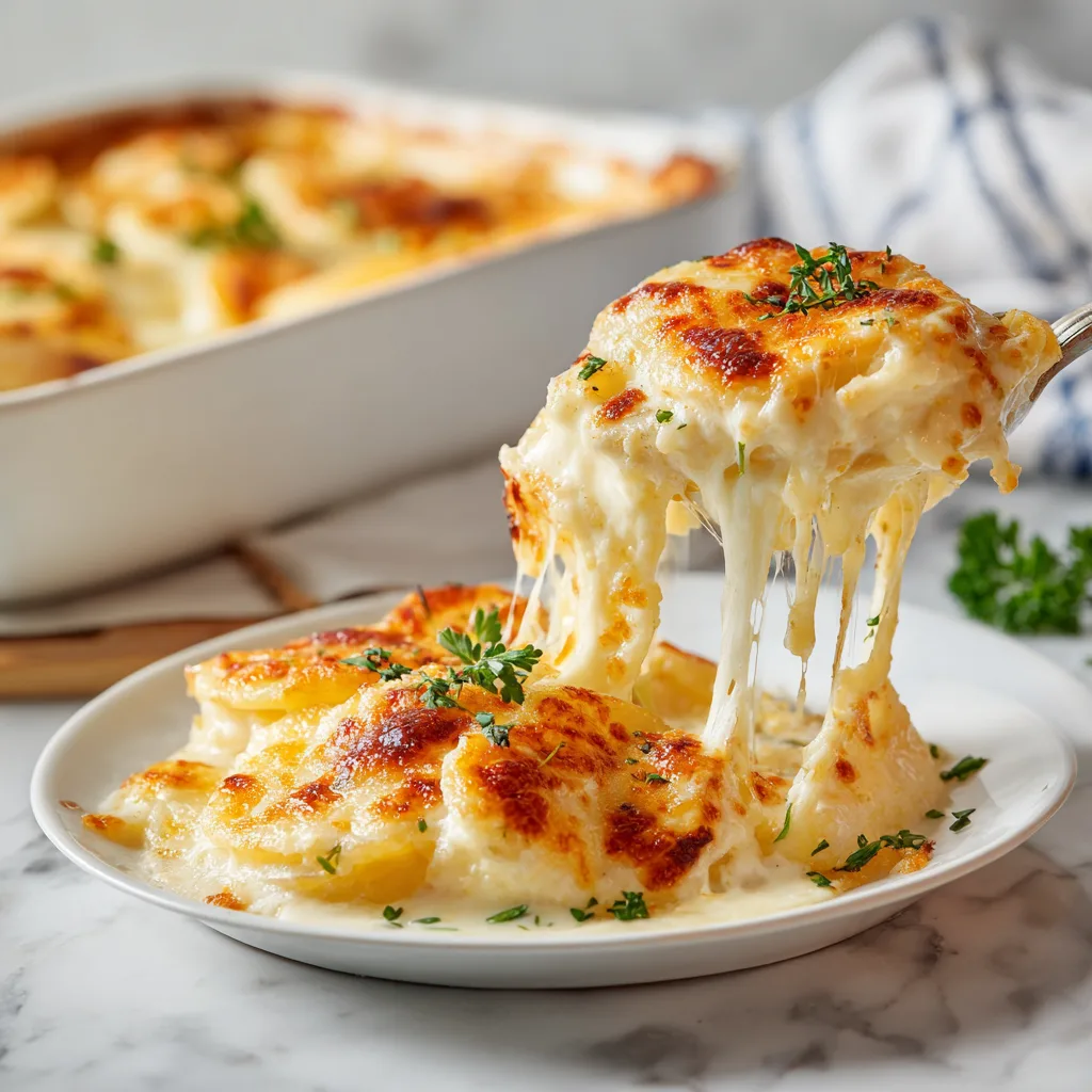 Perfect potatoes au gratin are creamy without being watery, rich without being heavy. The potatoes absorb the seasoned cream, becoming tender and flavorful throughout. The cheese melts into the sauce while also forming a crisp, browned topping that defines the dish.