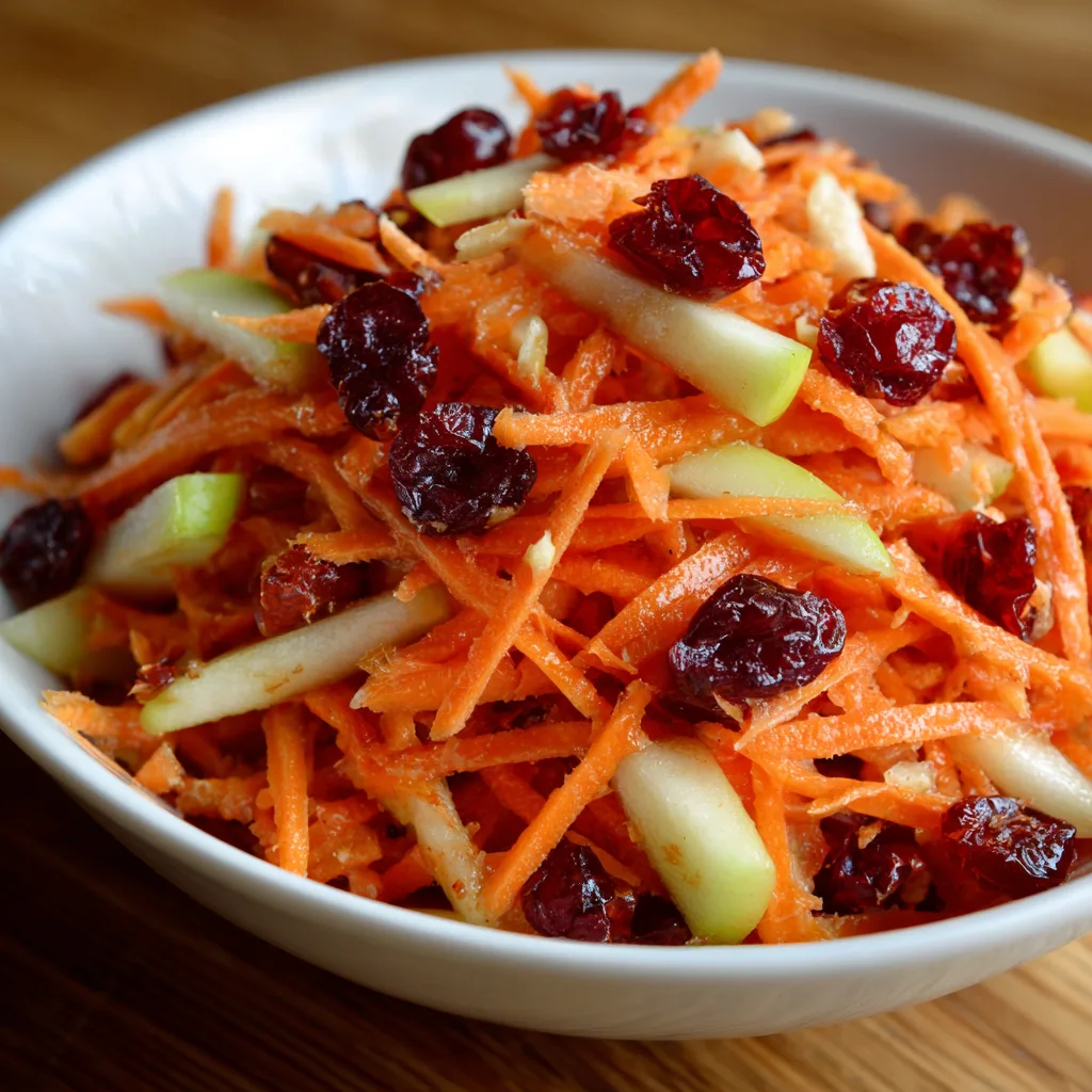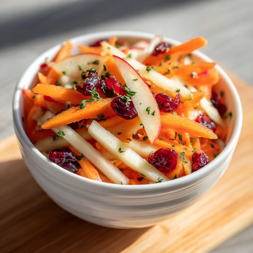 A light, crunchy, and naturally sweet salad made with fresh carrots, crisp apples, and tangy cranberries, perfect for healthy meals and festive gatherings.