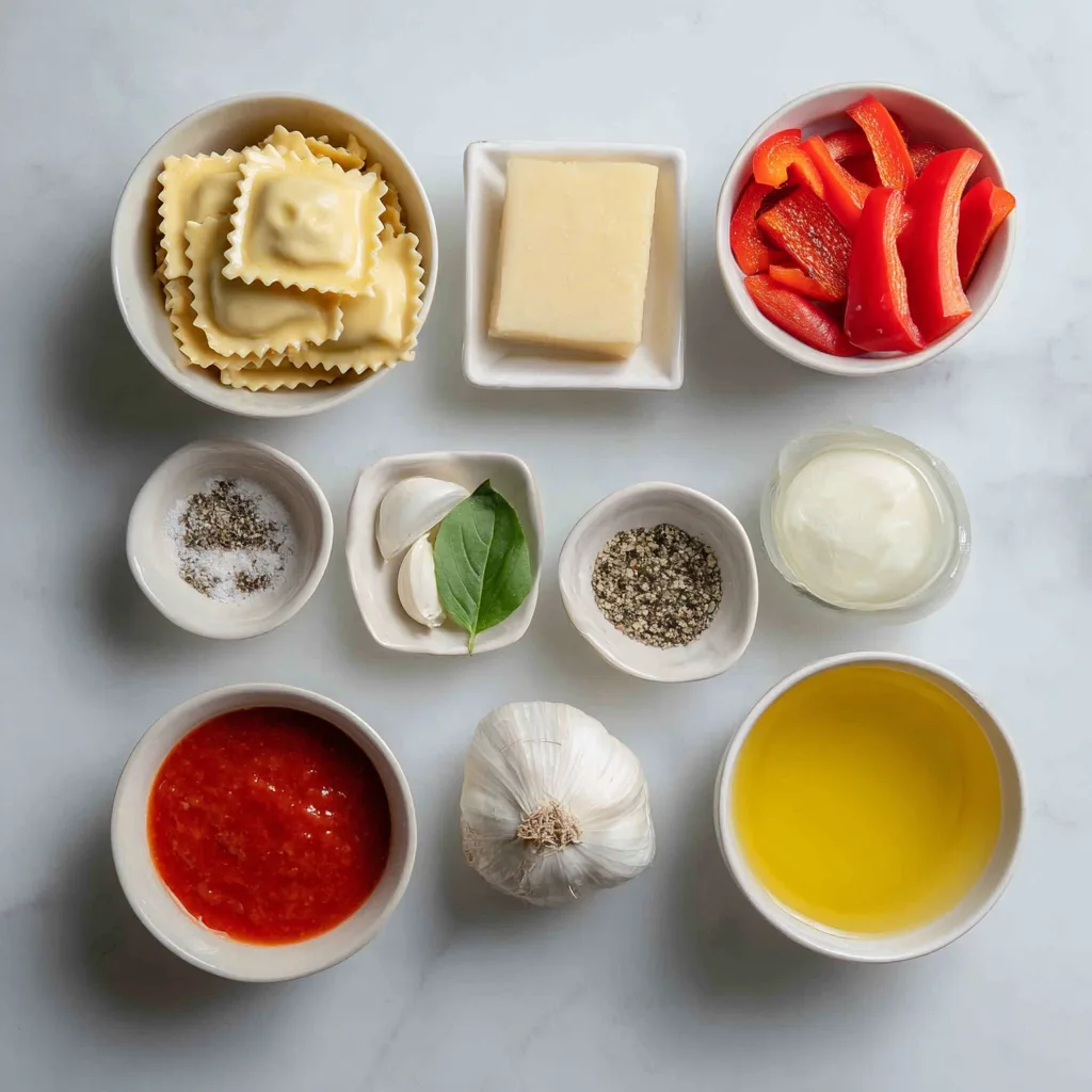 Ingredients for Roasted Red Pepper Ravioli Soup