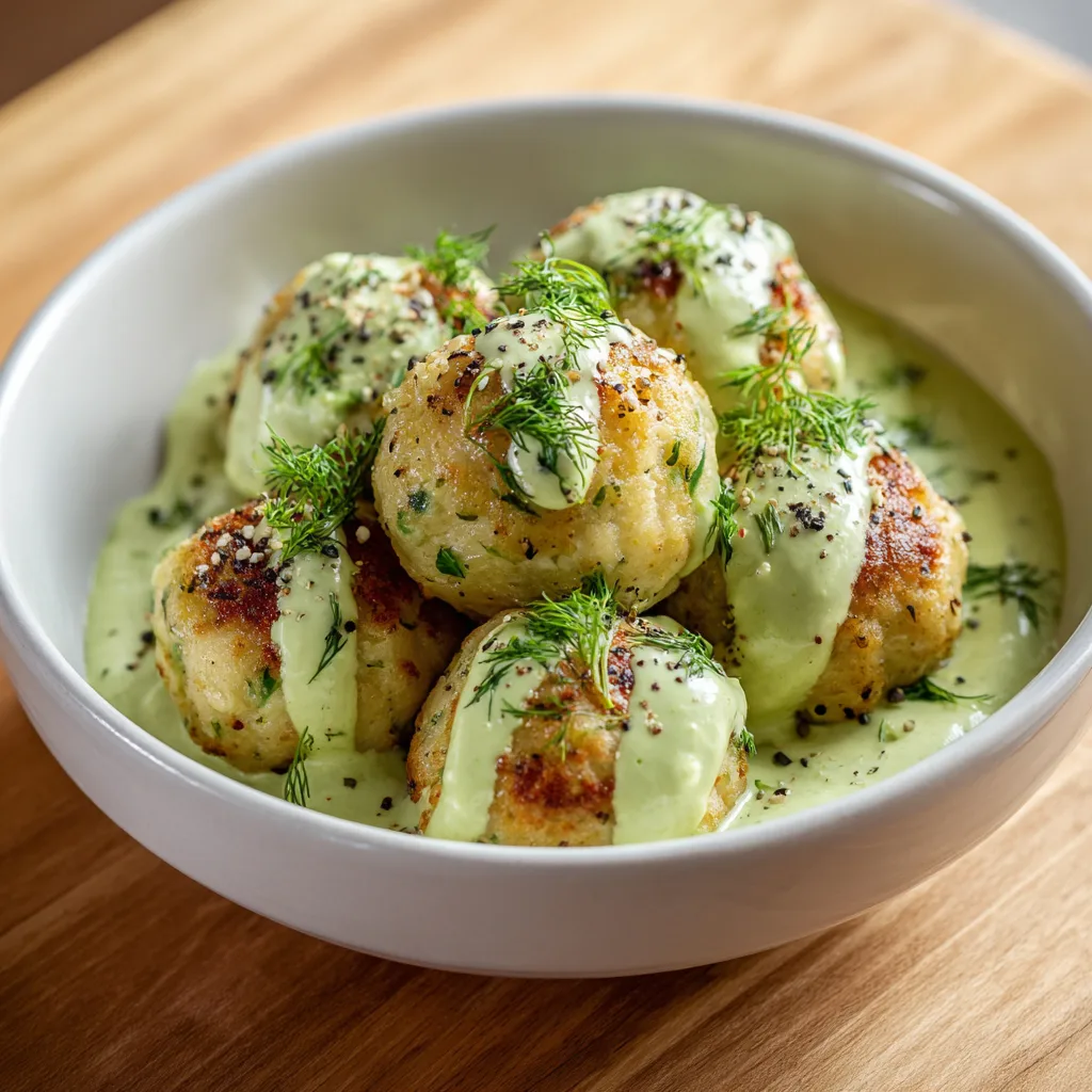The salmon balls are delicately flaky with crisp edges, while the avocado sauce adds cooling creaminess and brightness. Lemon and herbs cut through the richness, creating a dish that feels light yet deeply satisfying.