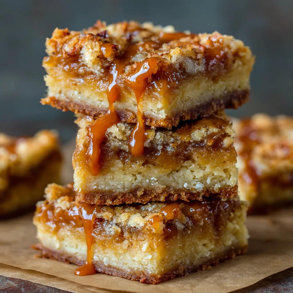 Rich, buttery dessert bars with a soft gooey center and a luscious salted caramel topping.
