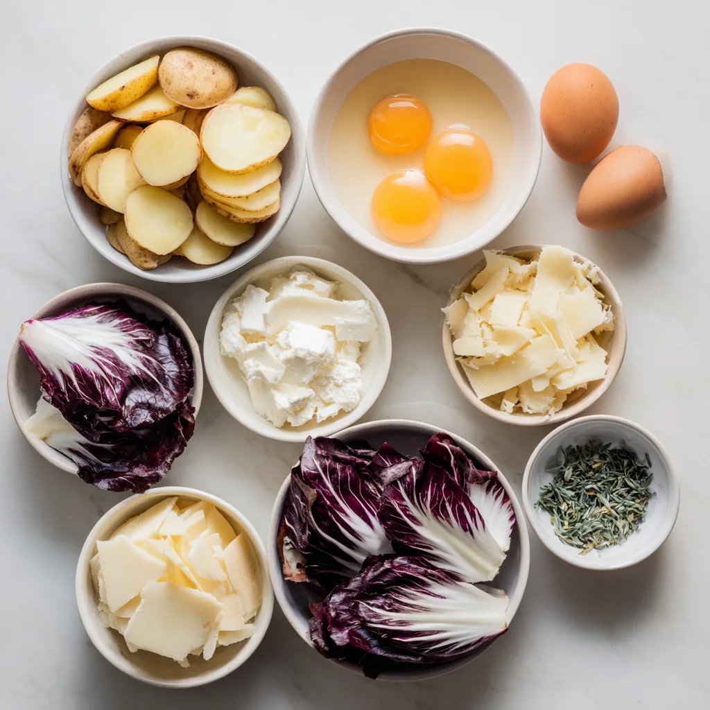 What makes this tart especially appealing is its versatility. It’s ideal for using up leftover potatoes, extra radicchio, or bits of cheese lingering in the fridge. The contrast between the earthy potatoes and the bold, slightly bitter radicchio creates a balanced flavor profile that feels grown-up, cozy, and refined.