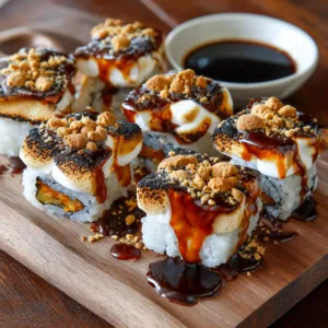 S’mores Sushi is a rolled dessert made by flattening marshmallows or marshmallow mixture into a sheet, layering it with chocolate spread and crushed graham crackers, rolling it tightly like sushi, then slicing it into bite-sized rounds.