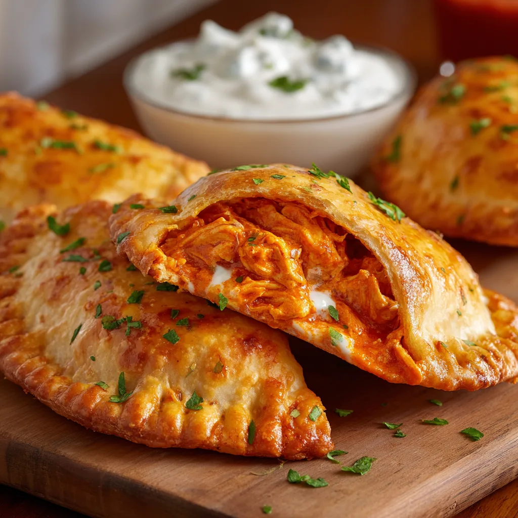 Golden, flaky pockets filled with creamy, spicy buffalo chicken and melted cheese, perfect for snacks, parties, or quick meals.