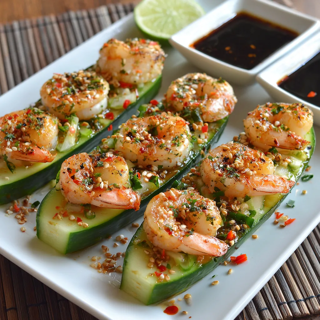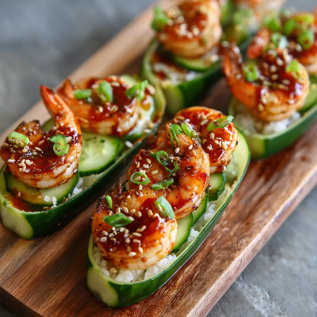Spicy Shrimp Cucumber Sushi Boats