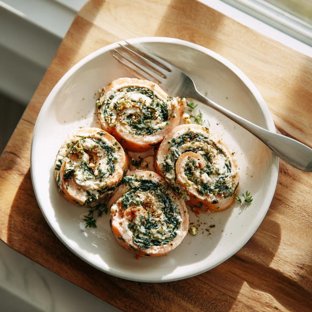 Rolling salmon distributes filling evenly and prevents dryness. Instead of stuffing thick fillets (which can overcook outside before inside heats), pinwheels cook evenly and retain moisture. Each slice delivers balanced flavor—no bland bites.