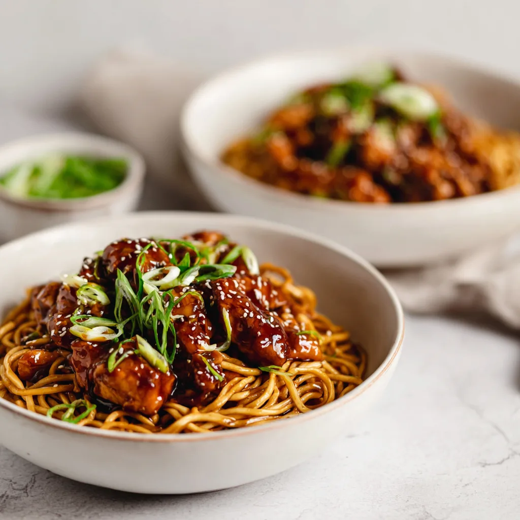 The sauce achieves a glossy, sticky consistency that clings to noodles without pooling. Garlic provides depth, honey and brown sugar add subtle sweetness, and soy sauce anchors the dish with umami. The balance ensures the dish remains savory rather than sugary.