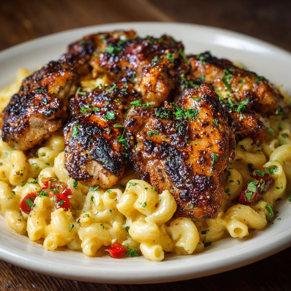 This dish works so well because it brings together two beloved comfort foods into one plate. The chicken delivers bold flavor with its sweet heat and peppery bite, while the mac and cheese cools everything down with its smooth, cheesy richness. Each forkful gives you contrast — spicy and sweet, creamy and crispy — without feeling overwhelming.