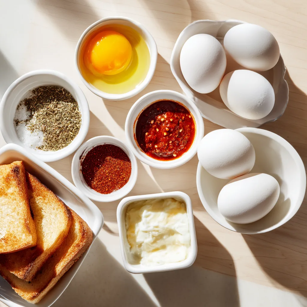 - Texture: Crispy toast + soft eggs