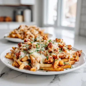 - Stir until combined and serve immediately over hot fries.