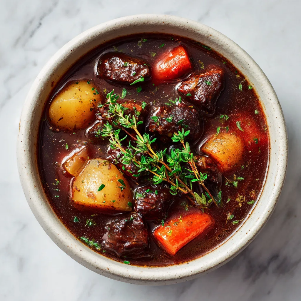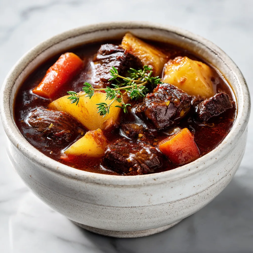 This recipe leans into traditional techniques—browning beef, building layers of flavor, and letting time do the work. The result is a stew with tender chunks of beef, vegetables that soak up every drop of broth, and a sauce that feels both hearty and refined. It’s perfect for autumn weekends, Halloween dinners, or any night when comfort food is essential.