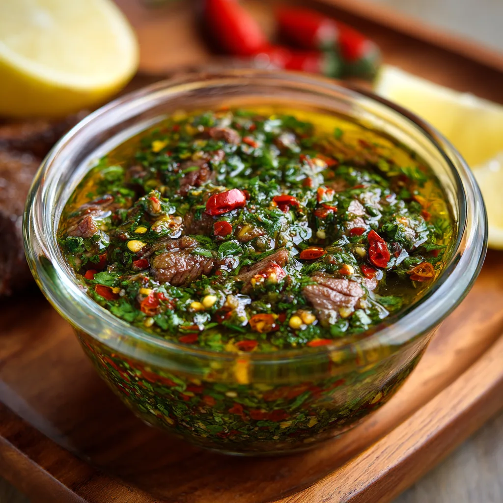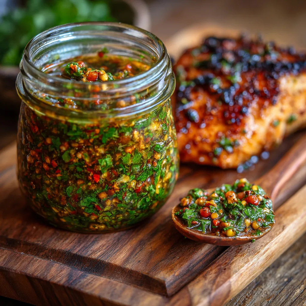 This version is designed to elevate everything it touches — grilled steak, roasted vegetables, chicken, seafood, sandwiches, and even eggs. The balance of acidity, smokiness, herb freshness, and subtle heat makes it versatile enough to act as a sauce, marinade, or finishing drizzle.